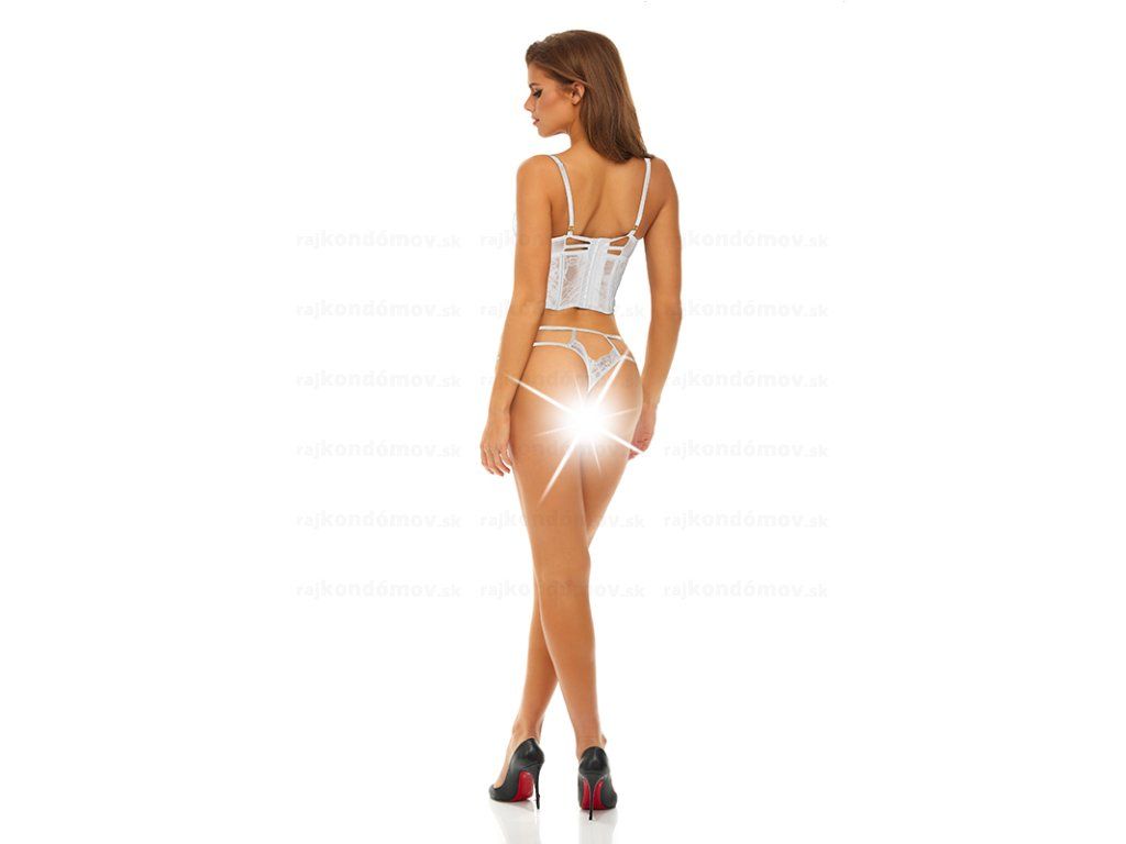 Biely erotický komplet je vyrobený z 90% nylonu a 10% spandexu. V balení je erotický korzet a nohavičky.
