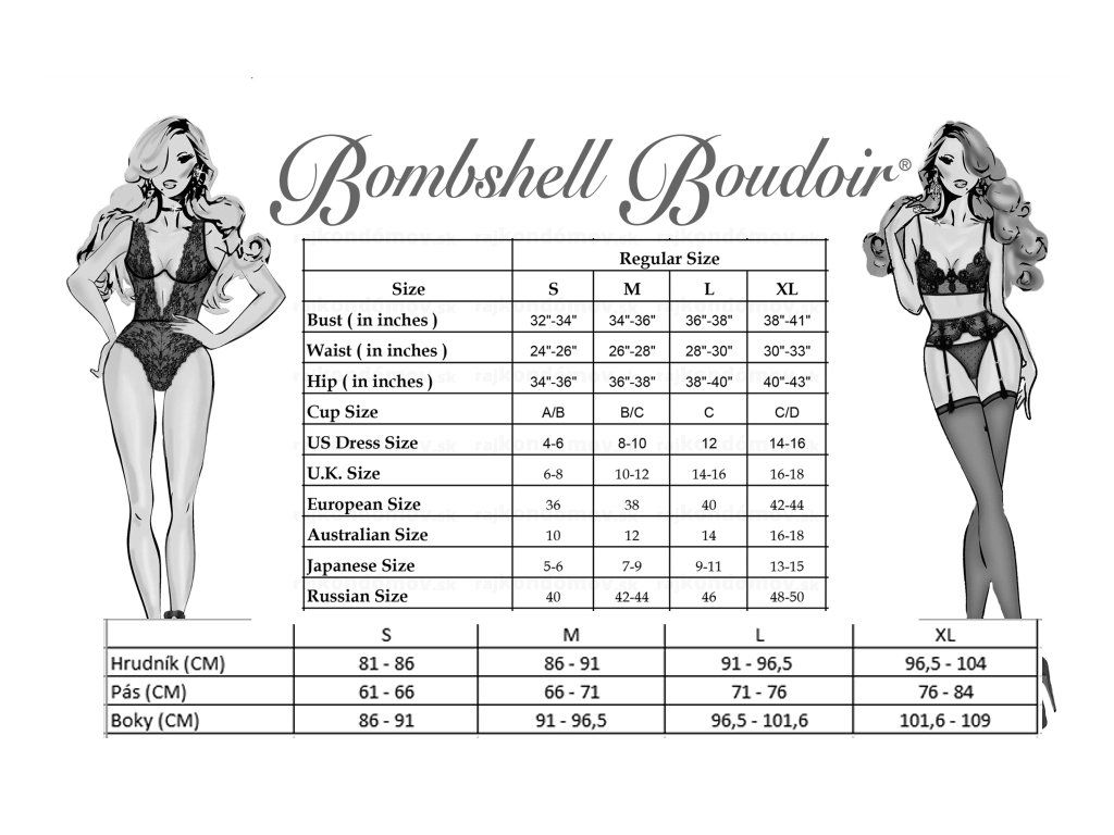 Tabuľka veľkostí Bombshell Boudoir prádla: