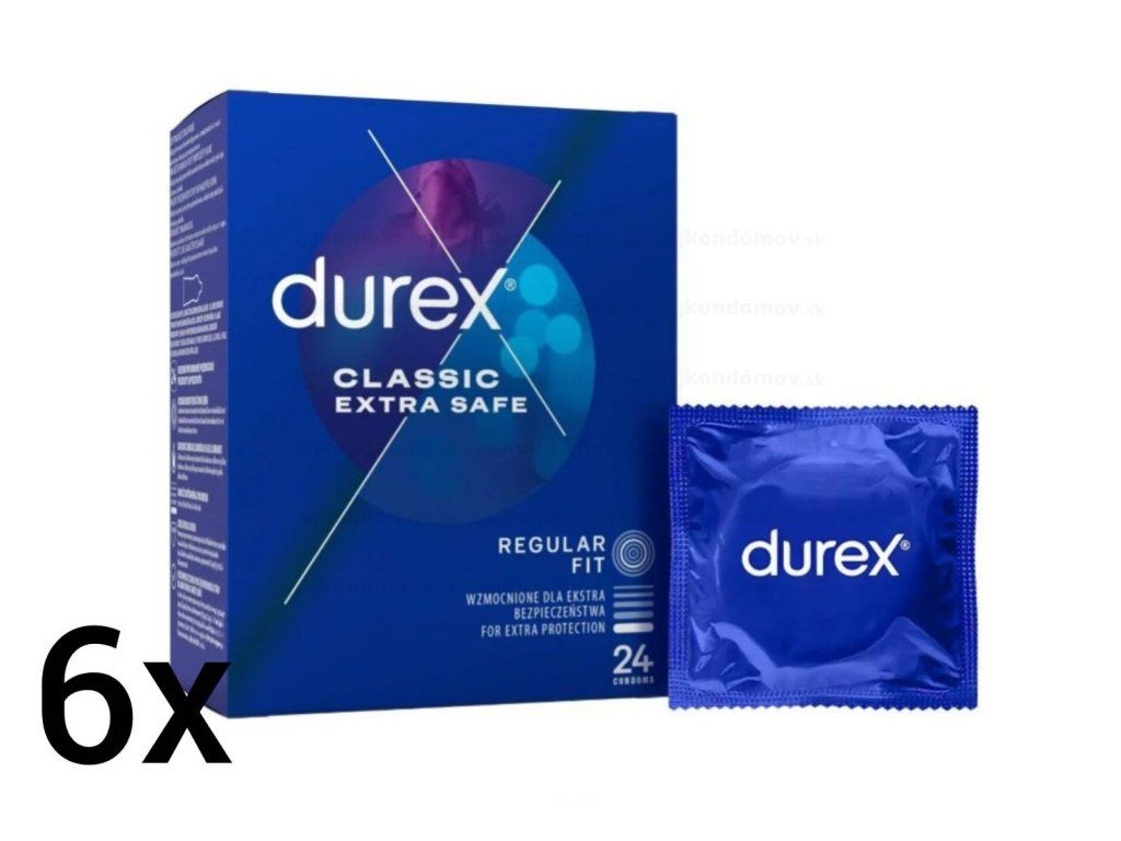 Durex Extra Safe, jedny z najbezpečnejších prezervatívov. Majú hrubšiu stenu a silnejšiu lubrikáciu. Latexové, používajte s lubrikačným gélom na báze vody.
