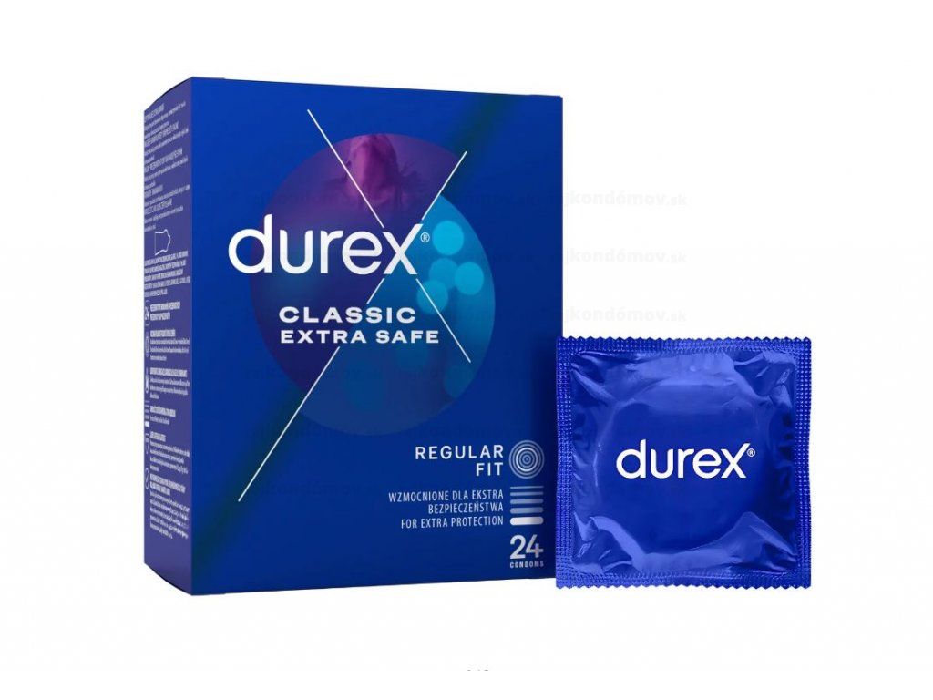 Durex Extra Safe, jedny z najbezpečnejších prezervatívov. Majú hrubšiu stenu a silnejšiu lubrikáciu. Latexové, používajte s lubrikačným gélom na báze vody.