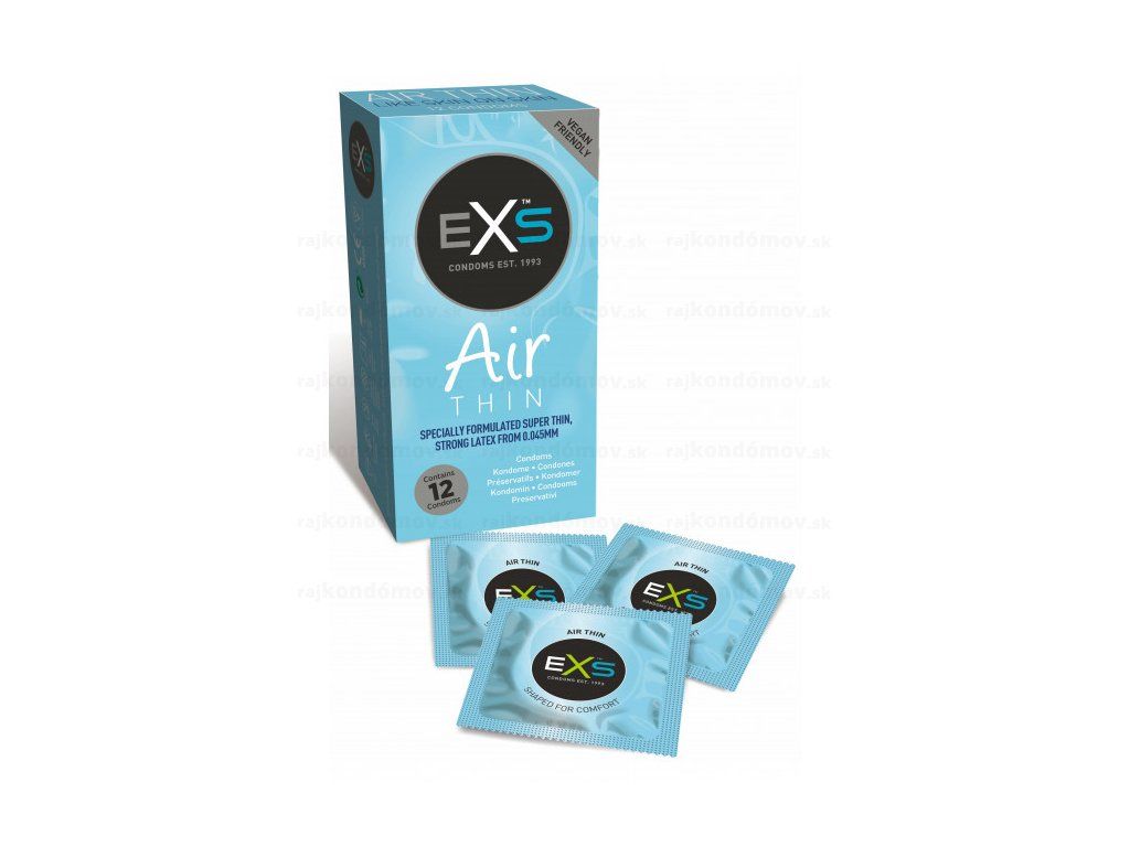 Kondómy EXS Air Thin sú nové ultra tenké latexové kondómy, ktoré sú ešte tenšie ako extra tenké latexové kondómy iných značiek. Boli vyvíjané novou technológiou pre extra jemný pôžitok a komfort počas styku.