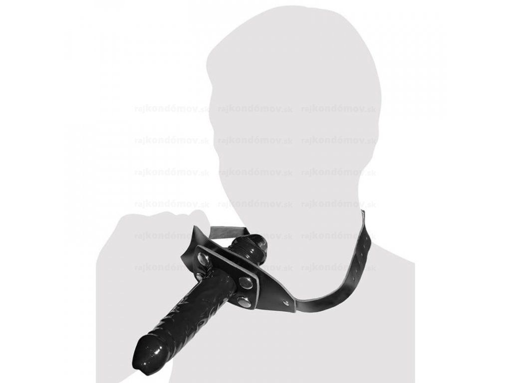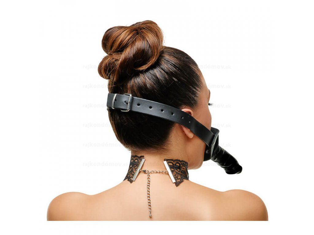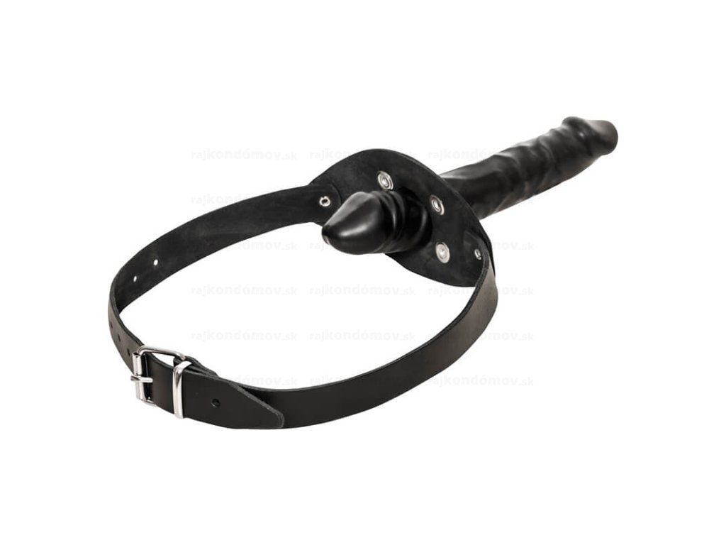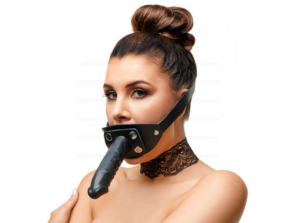 Silikónový roubík s dildom. BDSM roubík do úst vyrobený z príjemného silikónu čiernej farby. Dildo je malé a realistický tvarované, vhodné na vaginálne aj análne použitie....